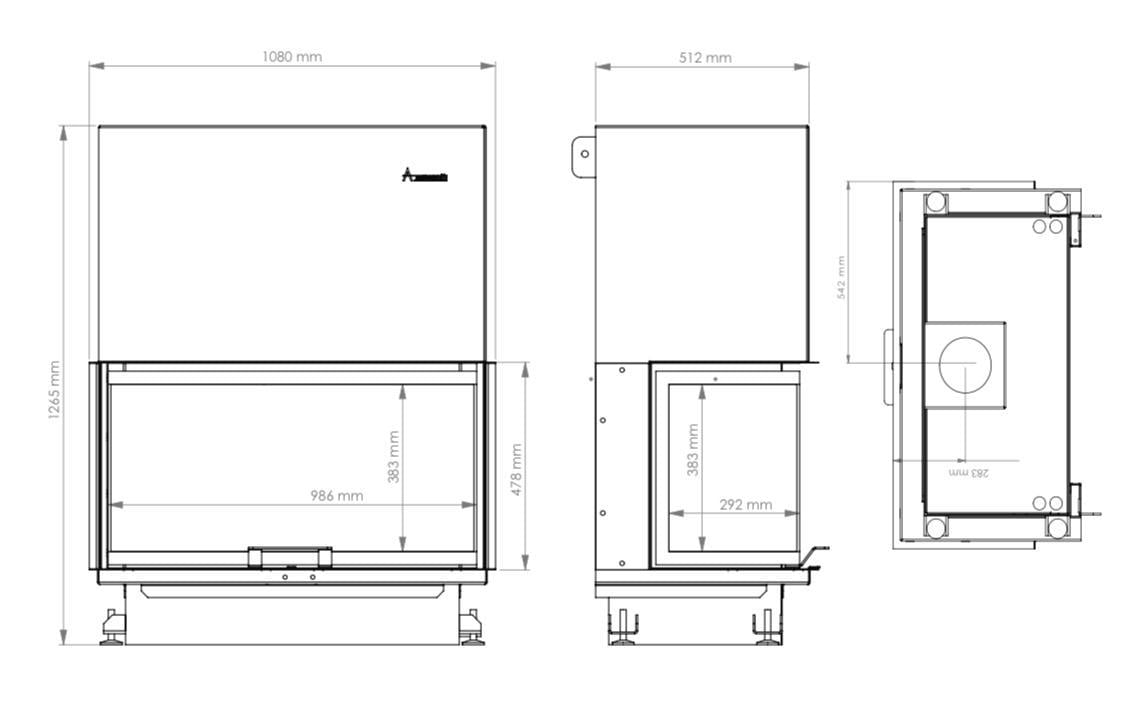 Ana cam cephe 993 mm cam ve 2 yan cephe 299 mm ölçülerindedir. Tüm camlı yüzlerin yüksekliği 383 mm ve pencerelerin yüksekliği, 3 taraflı bir şömine için piyasadaki en rekabetçi fiyatla.
